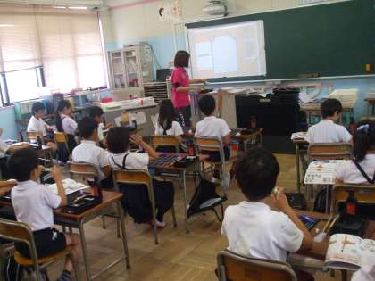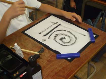 3年生と4年生が習字の学習をしていました。3年生は初めての習字の学習です。