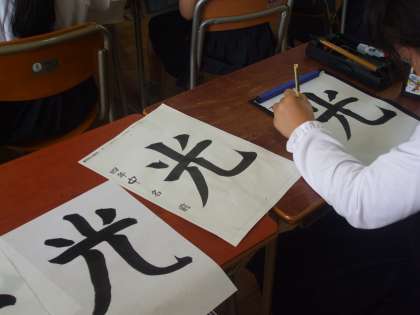 筆の持ち方や硯の使い方などの説明を真剣に聞いていました。4年生はさすがに一年間の学習の成果でしっかりとした字を書いていました。一年の進歩ってすごいですね!!