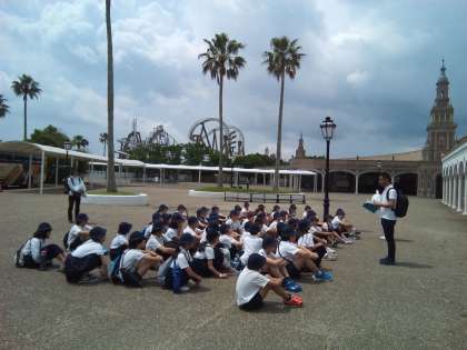 朝の集合や出発式がスムーズで、早めにスタートできたため、道路も空いていて、予定よりも30分早くスペイン村に到着することができました。バスの中では、クイズや歌でずっと盛り上がっていました。バス酔もなく、全員元気です。