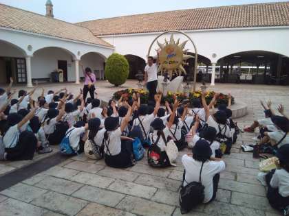 スペイン村では、十分楽しみました。遊び疲れた人と西部先生が聞くと、多くの子どもたちが手を挙げました。これからホテルへむかいます。