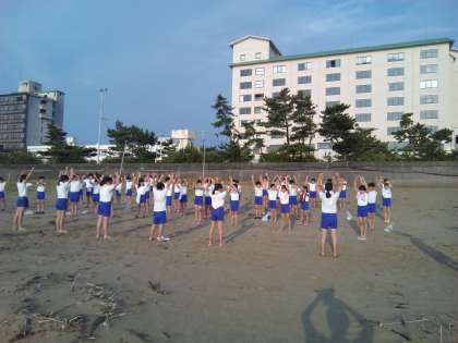 記念撮影とラジオ体操も終わり、注意事項を聞いて、いざ海へ。楽しむぞ〜。
