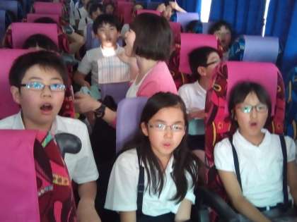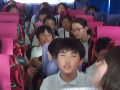 名残惜しい気持ちで、学校まで歌い続けます。楽しかった最高の修学旅行を締めくくろう。