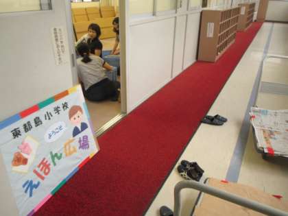 ひまわりの皆さんとPTA役員・委員のみなさんと教職員で、たくさんの絵本を並べました。今年もおもしろそうな本がいっぱいです。