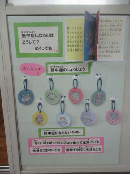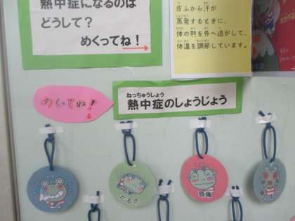保健室の前には、熱中症について楽しく学べる掲示があります。