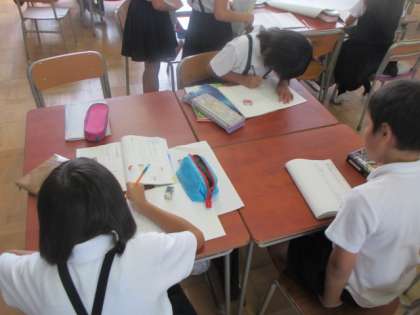 4年生が壁新聞を作っています。