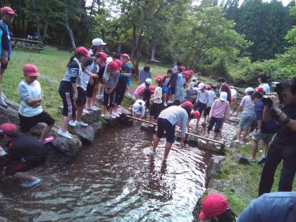 次は魚つかみです。とても冷たい水に入って、逃げる魚をゲットします。