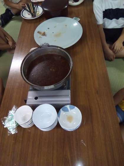 全部の班が完食です。全員元気に、次は7時半からキャンプファイヤーです。