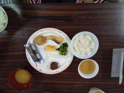 登山に備えて、しっかり朝食を摂ります。でも食べ過ぎには注意しましょう。