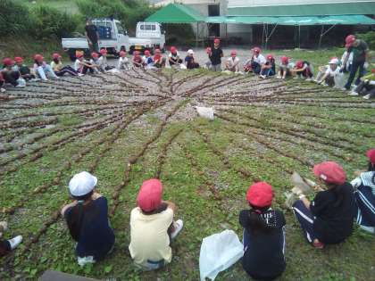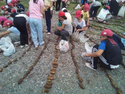 自分が収穫したジャガイモを数えています。最高は78個でした。今年はすごい収穫量です。