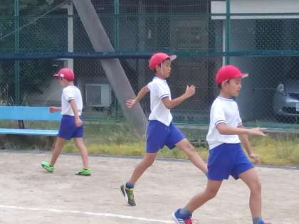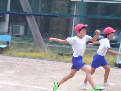 外部講師を招いて、陸上競技の授業を受けました。短距離走の走り方を習いましたが、子どもたちはうまく手足動かすことができませんでした。