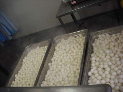 おだんごは、蒸した後、甘いたれに漬け込まれます。