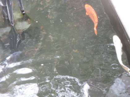 池のコイは天気のことなどお構いなし、元気に泳ぎまくってます。
