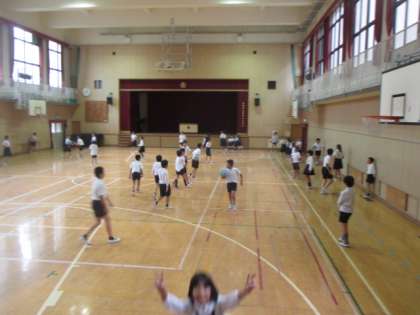 5年生は、お弁当の後、講堂で元気に遊びました。