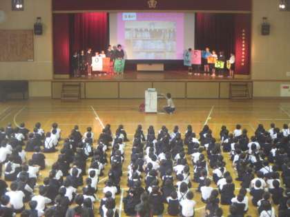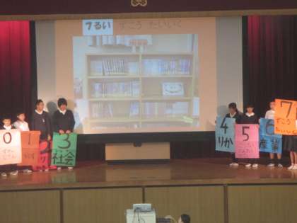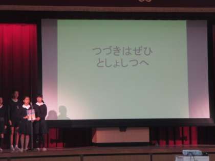 今朝の児童集会は、図書委員会の発表でした。