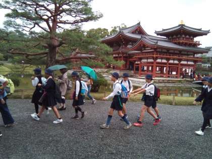 十円玉でお馴染みの世界遺産にもなっている、「平等院鳳凰堂」をバックにして。
