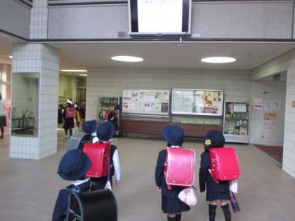 朝、登校した子どもたちがひがみやビジョンを見ています。