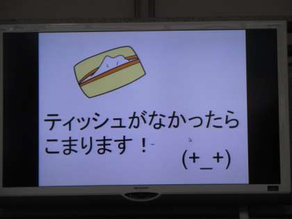 ハンカチやティッシュペーパーがないと困りますよ、と呼びかけています。