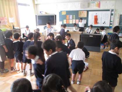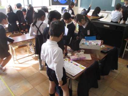 1年生の教室がとってもにぎやかです。お祭りかな?