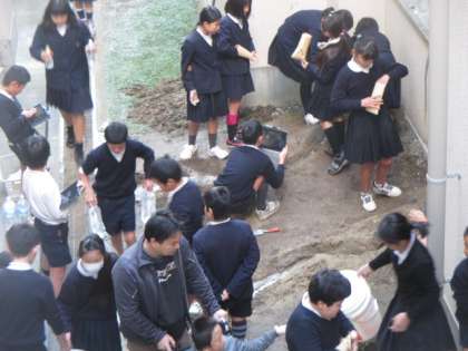 流れる水は、大地の形を変えていきます。実際に水を流して「浸食」「運搬」「堆積」のようすをみて、しっかり勉強しています。