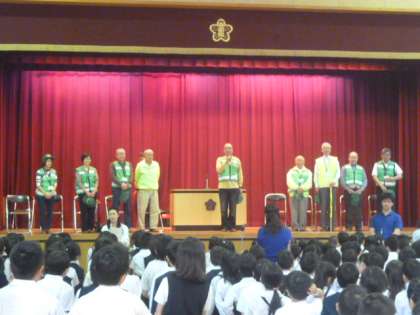 登下校でお世話になっている見守り隊の皆さんに、児童全員で感謝の気持ちを伝えました。