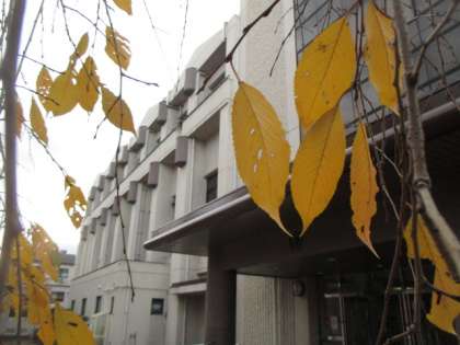 正門の枝垂桜の枝も、ほとんど葉を落としてしまいました。