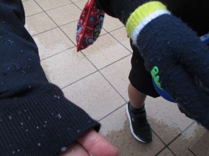 帰り際の校門で、子どもたちが雪まじりの冷たい雨がふっていることをうれしそうに教えてくれました。