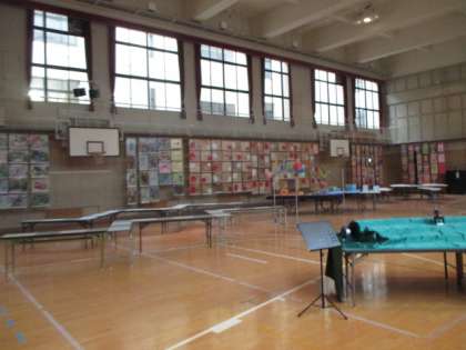写真は、今朝の講堂のようすです。昨日の放課後、職員で作品展の会場設営を行いました。まだ、がらーんとしていますが、子どもたちの工作を運び入れれば、とってもにぎやかな会場になるはずです。