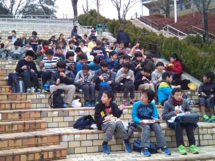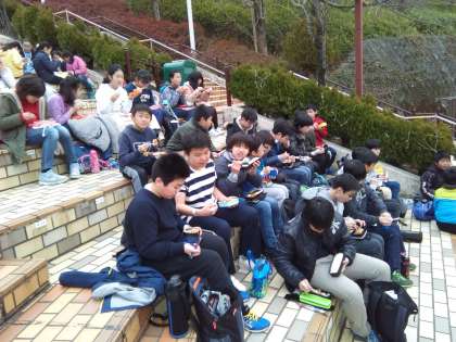 みんなで集まって、お弁当タイム。もっと広がってもいいのに、仲良し学年団は離れようとしません。