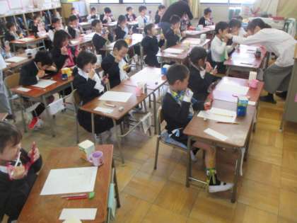 2年生の歯磨き指導は、歯科衛生士さんが歯のみがき方を教えてくださいます。
