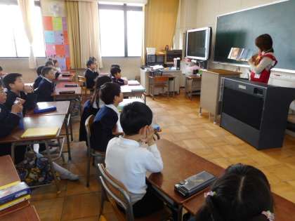 6年生は最後に「6年間読み語りをありがとうございました。」とお礼を伝え、ひまわりさんは「中学校でもがんばってください。」と言葉をかけあっていました。