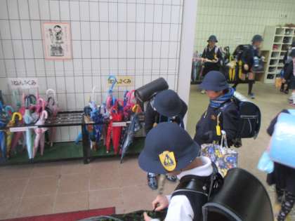 今日も傘をさして登校しました。1年生も、傘の扱いは十分に慣れてきました。当たり前のようにできていることですが、これもちゃんと教えてもらったことです。