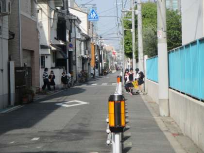 班長が列の先頭に立ち、副班長が列の後ろで見守るスタイルで学校にやってきます。