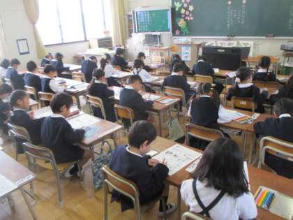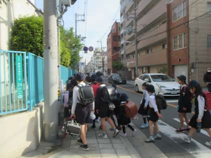 まだ登校に慣れない1年生と手をつないで、上手につれてきている班長さんがいました。
