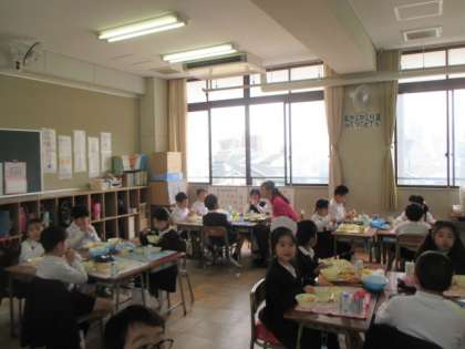 本校では、毎日の給食のこんだてに関する情報を校内LANで各教室に配信し、給食時の指導に活用しています。