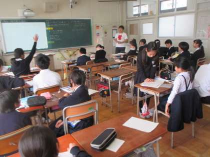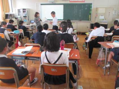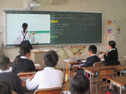 本校には、各学級の教室に電子黒板が設置されています。教科書や教材、資料映像等を映し出して、教室の子どもたちにとっては学習理解のため、先生にとってもわかりやすい指導のための必須アイテムとなっています。