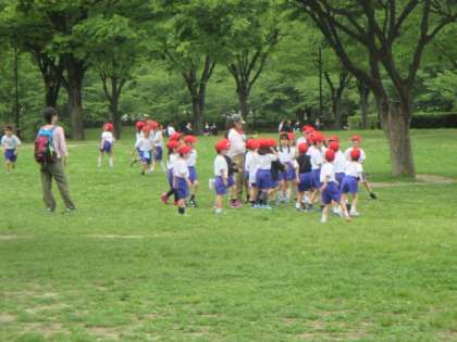 たくさん遊んでたくさん体を動かします。うっかり大人がおにごっこに加われば、エンドレスで走らされる羽目に遭います(-_-;)