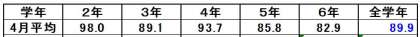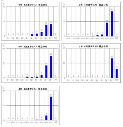 漢字確認テスト1回目の結果が出ました。(1年生を除く)
