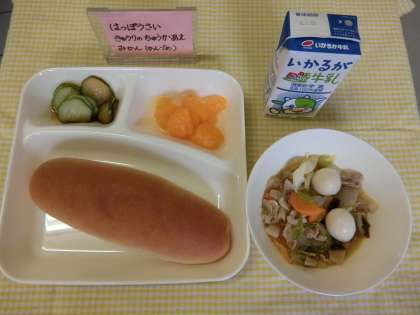 今日の給食は「八宝菜」。「八」は8種類というわけではなく、いろんな種類の具がたくさんという意味です。