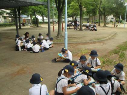 学習の後は、公園で遊んで楽しみました。たくさん歩いたのに元気いっぱいでした。