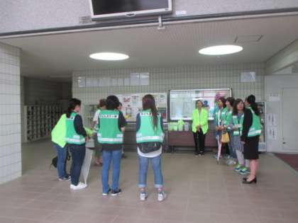 第4・第5水曜日に学校の玄関ロビーに集合して、緑のジャケットやベストを着用します。