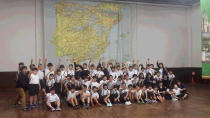 フラメンコの先生と一緒に、オレー!フラメンコをおうちの人に帰って教えてあげるそうです。お楽しみに。