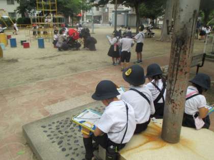 1年生も、みんなで公園たんけんに出かけました。
