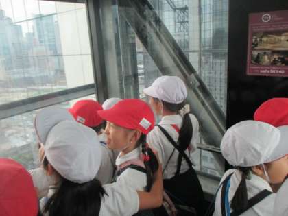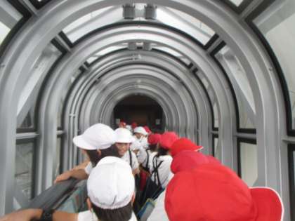 その展望台へ上るには…眺めのいいガラス張りのエレベーターとこれまた周囲がぐるりとガラス張りの空中エスカレーター!