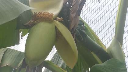運動場の鉄棒の奥にあるバナナの木に花が咲きました。その横には、なんと、小さな小さな実がなっています。とても、かわいいです。懇談会などで学校に来られた時にぜひご覧くださいね。大きく育ちますように。