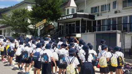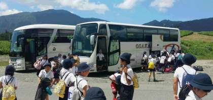着きました!予定の時刻にピッタリバスが、ハチ高原に到着しました。ハチ高原は、快晴です。日差しは、強いですが、心地よい風も吹いていてさわやかです。バスの中は、大合唱でバスよいもありませんでした。大盛り上がりでした。最高のスタートが、きれました。