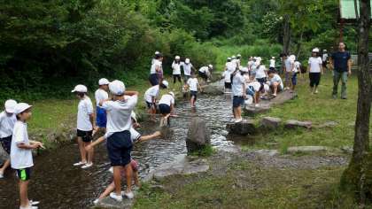 続いて川遊び。水温、約7℃の小川ではしゃぎ回りました。楽しい!