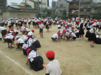 今回は、前日の台風によってプラスチックの破片やごみが運動場に落ちていましたが、今日できれいに取り除かれました。