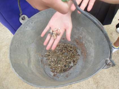 みんなで拾った小石は、運動委員会によって集められました。ごくろうさま。