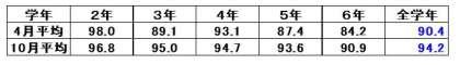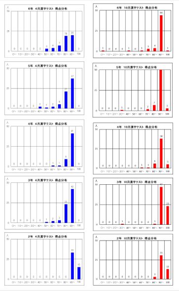 漢字確認テスト2回目の結果が出ました。(1年生を除く)