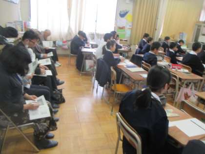 教室の後ろには地域の方々がズラリとお座りになられ、ピリッとした雰囲気のなか、発表会が行われました。